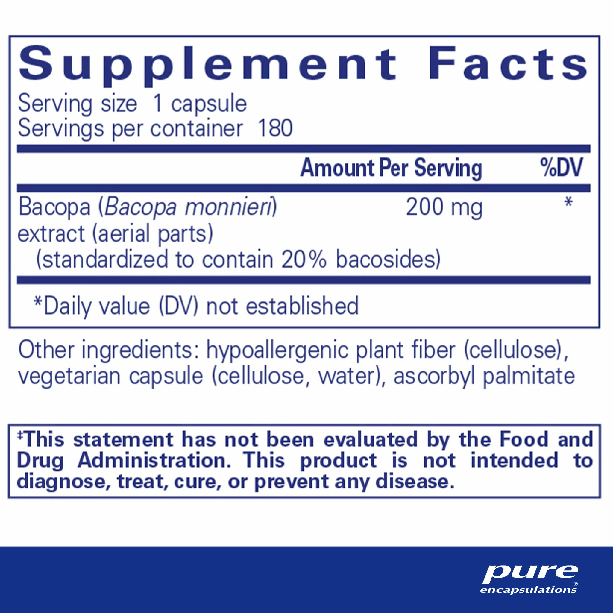 Ayurvedic medicine has utilized Bacopa monnieri traditionally for centuries to support the nervous system, cognitive capacity and memory. Over the last thirty years, preliminary clinical trials have suggested encouraging results. A three-month trial conducted by Australian scientists suggests that bacopa may support learning, moderate stress and support memory.1 An animal study suggests the potential for bacopa to support mental function under stress.2 In a double-blind, randomized, placebo-controlled investigation, bacopa supported memory retention in adult subjects.3 The effects of this extract may, in part, be explained by antioxidant protection of important processing centers in the brain, including the frontal cortex, striatum and hippocampus.4 Bacopa also may help to promote healthy synaptic activity and neurotransmission in the brain.5‡