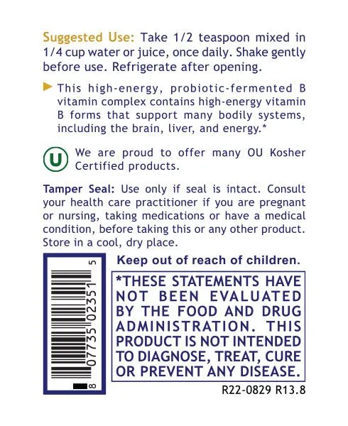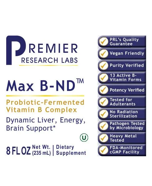 Max B-NDTM is a nutritional industry first – with never before available probiotic-fermented B vitamins. This product contains a high-energy B vitamin complex that delivers premier nutritional support.* Each 1/2 tsp. supplies high energy vitamin B forms including B5 as pantothenic acid, vitamin B2 in the riboflavin-5-phosphate form and more.